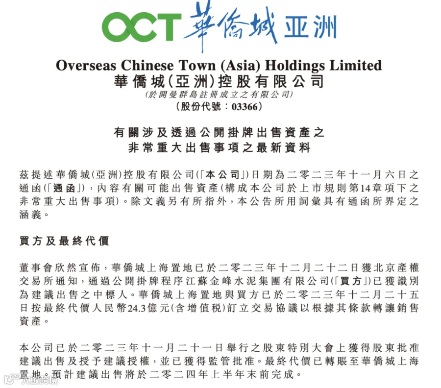 按照华侨城挂牌转让时的公告:此次出售,将可令集团盘活其资产、加速资产周转。