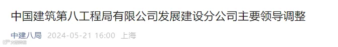 经中建八局党委研究决定:许岳峰同志任中国建筑第八工程局有限公司发展建设分公司董事长、党委书记;免去李伟同志中国建筑第八工程局有限公司发展建设分公司董事长、党委书记职务。