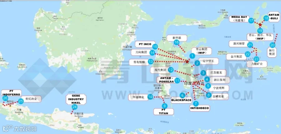 印尼的镍金属冶炼企业分布图