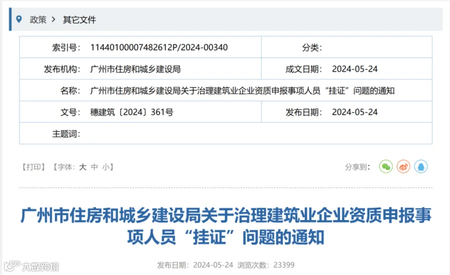 相关阅读:“挂证”退出舞台?广州:2024年6月底前,工人实名制、工程审批、建筑市场监管各系统之间,数据全面共享!