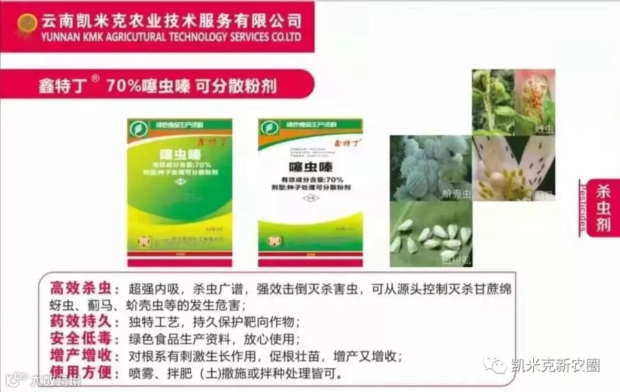 鑫特丁:超强内吸,杀虫广谱,强效击倒灭杀害虫,可从源头控制灭杀蚜虫、蓟马、蚧壳虫等的发生。