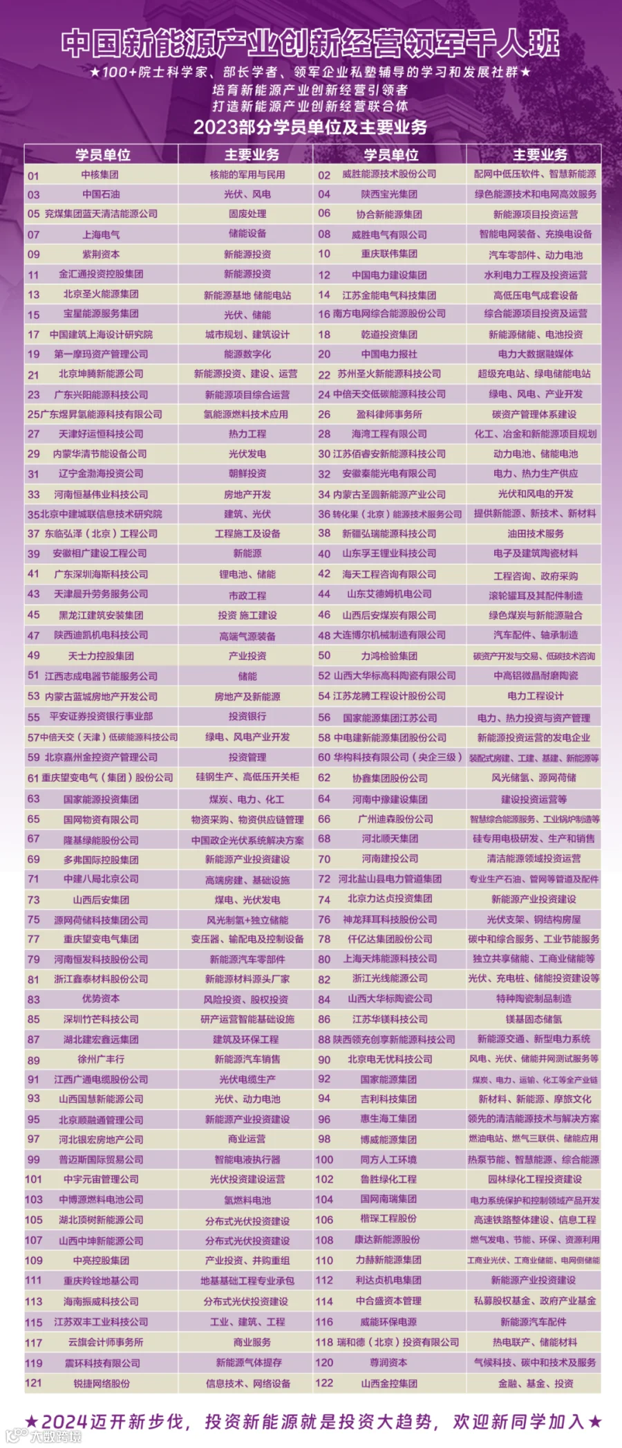 欢迎加入:中国新能源产业创新经营研修班