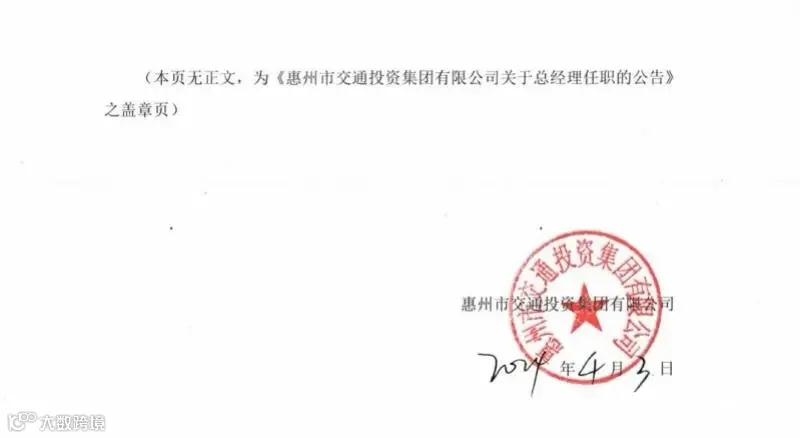 4月3日,惠州市交通投资集团有限公司发布公告: