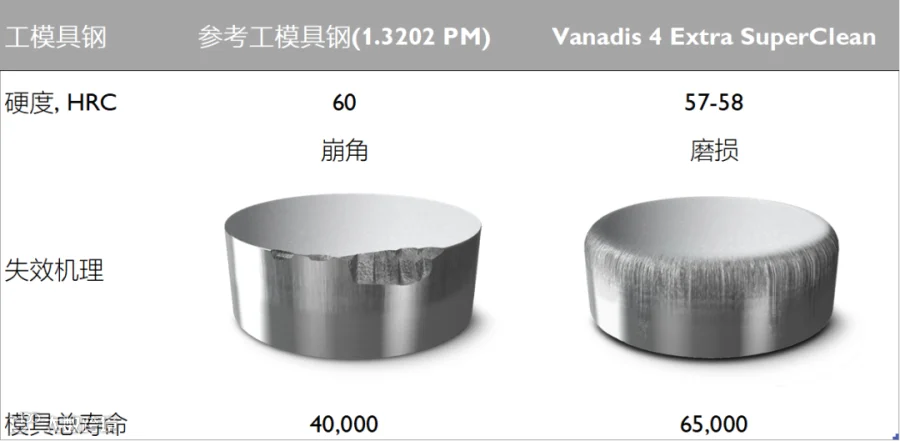 选用Vanadis 4 Extra SuperClean,能高效满足冷成型马达压环的生产要求,这是对质量、精度和可靠性的策略投资。这种选择可以提升您的硬盘产量, 从而达到并超越业界的标准性能、寿命和精度,确保提供卓越可靠的最终产品。