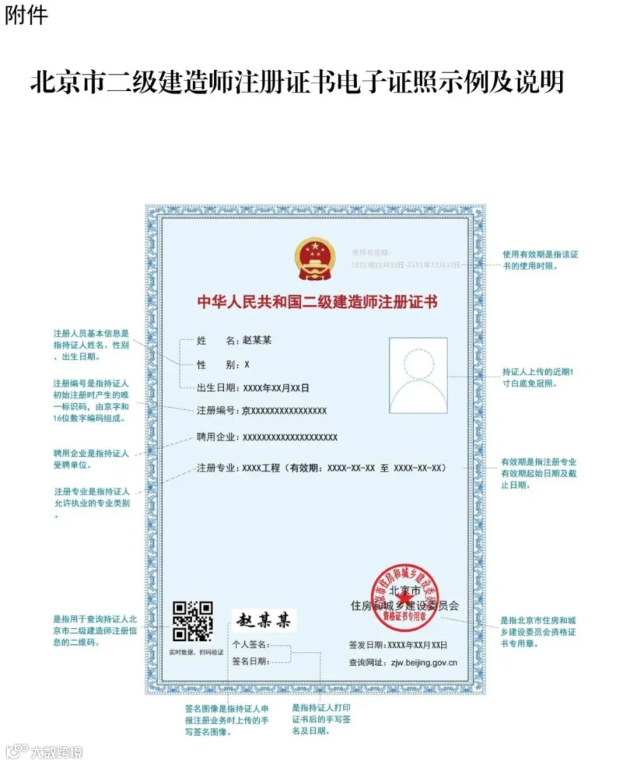 附件:北京市二级建造师注册证书电子证照示例及说明.doc