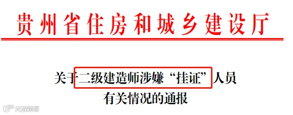 2022年11月22日,贵州省住建厅发布《关于涉嫌“挂证”注册人员名单的通报》。共有19365名二级建造师涉嫌“挂证”。