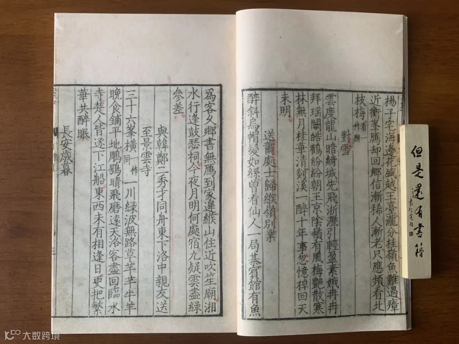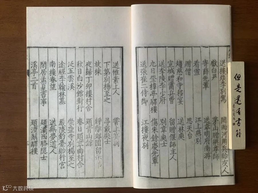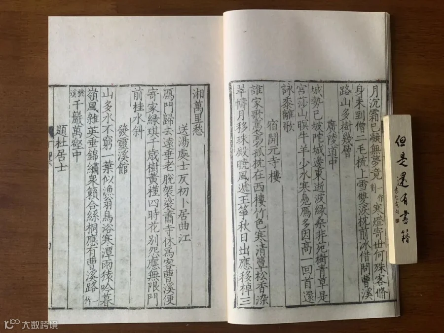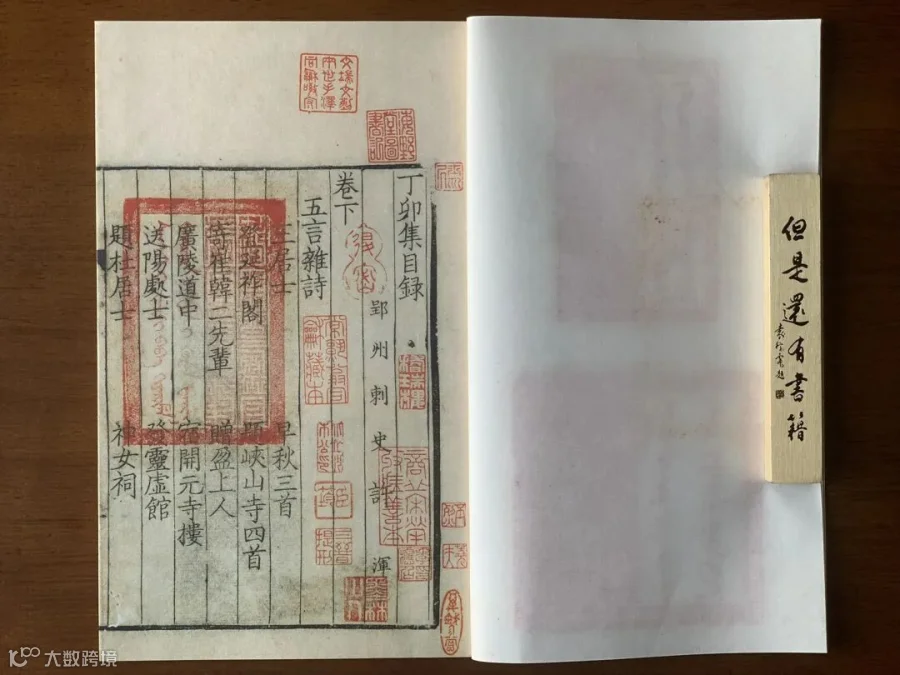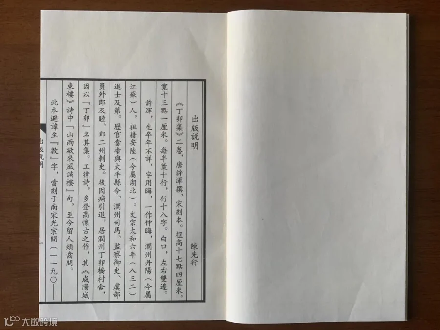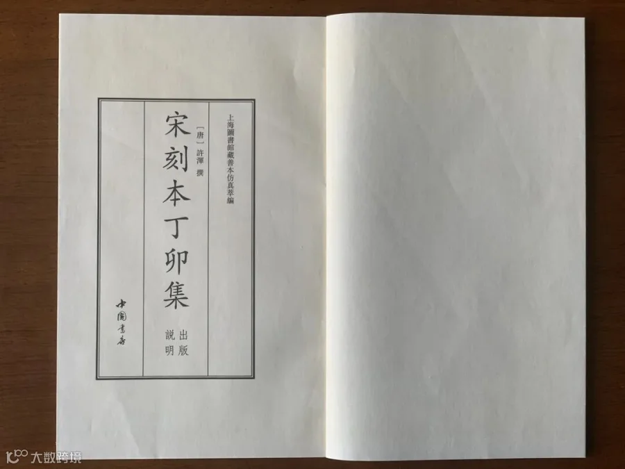 《丁卯集》二卷,唐许浑撰,宋刻本。匡高十七·四厘米,寛十三·一厘米。每半叶十行,行十八字。白口,左右双边。今藏于上海图书馆。