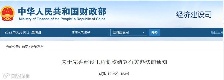 去年6月,财政部、住建部联合发布《关于完善建设工程价款结算有关办法的通知》,自2022年8月1日起施行,自此日期起签订的工程合同应按照本通知执行。其中明确: