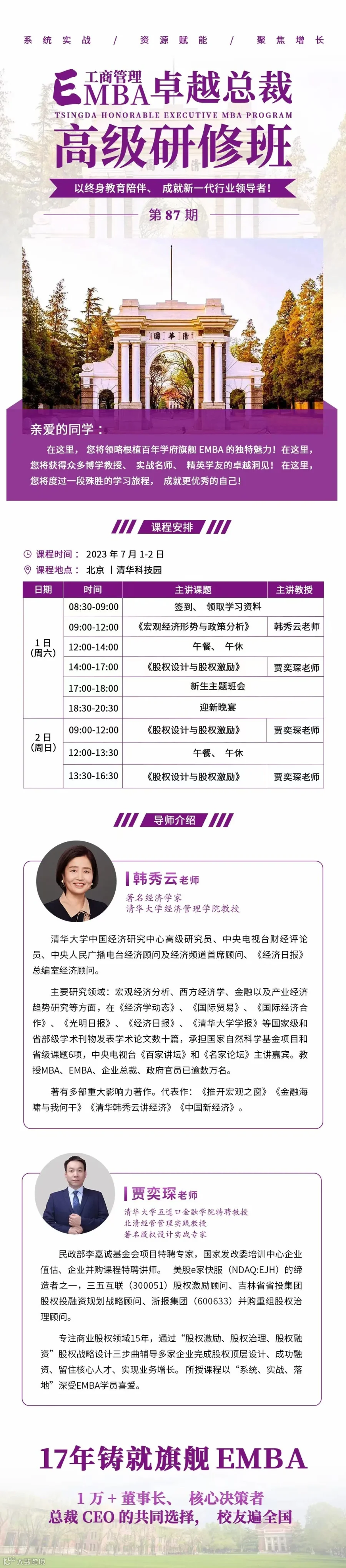 欢迎加入:清大·工商管理(EMBA)总裁高级研修班