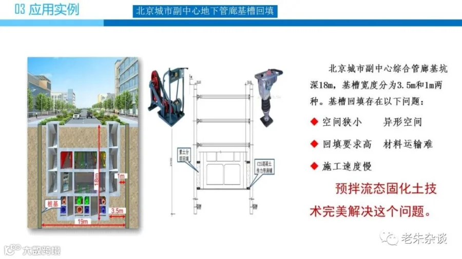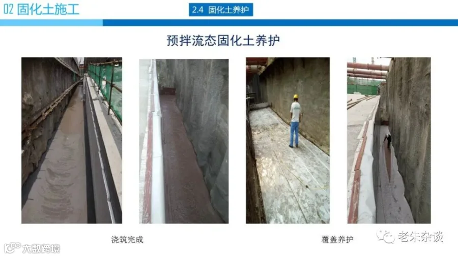 项目积极探索、应用四新技术,采用流态固化土替代现有的石粉渣回填,充分利用原土,在掺入一定比例的固化剂、水泥、水之后,通过独创工艺和特殊机械进行充分拌合均匀,形成具有可泵送的、流动性的回填材料,用于肥槽、基坑等回填浇筑。预拌流态固化土质量可控,施工进度快,造价低廉,适用范围广泛,环境友好。
