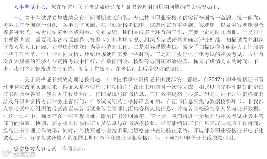 其实,人事考试中心早就对这个广大考生都关心的问题做出过公开回应,让我们一起来看看原文: