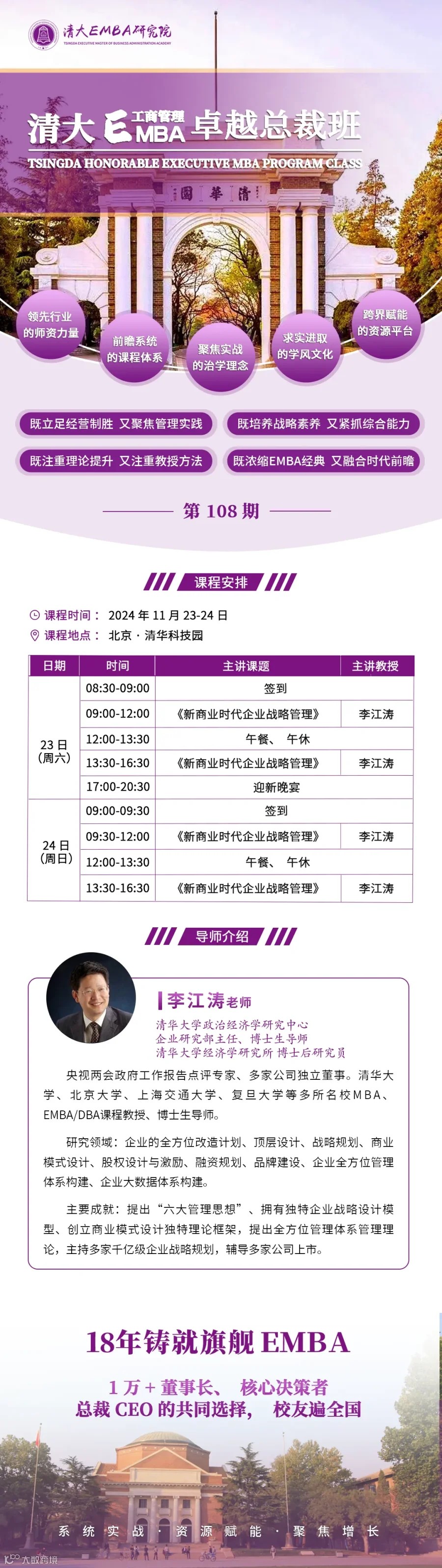 欢迎加入:清大·工商管理(EMBA)总裁高级研修班