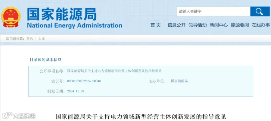 12月5日,国家能源局印发《关于支持电力领域新型经营主体创新发展的指导意见》,从完善调度运行管理、鼓励平等参与电力市场、优化市场注册、完善市场交易机制、做好计量结算等方面,提出了促进新型经营主体创新发展的相关措施。