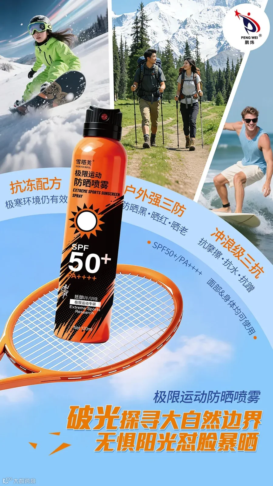 极限运动防晒喷雾:户外探险的“防护铠甲”。