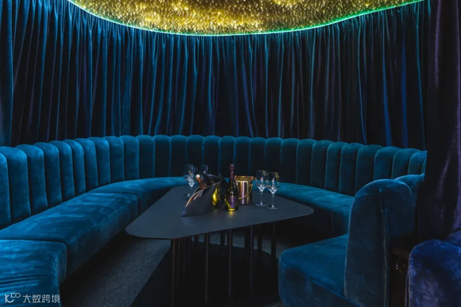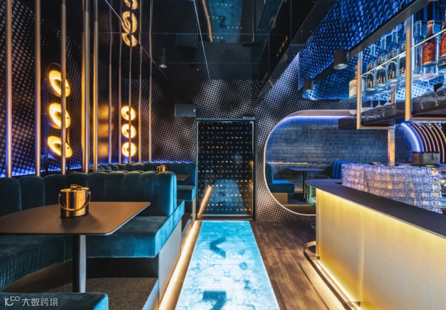 除了营造梦幻的氛围,LUNA CLUB更在实用性与私密性的打造上倾注了无尽的心思,确保每位宾客每一刻都沉浸于极致的舒适体验之中。从跃动的舞池到流光溢彩的吧台,再到雅致的卡座,每一处细节都精心布置。太空元素的装饰品熠熠生辉,天鹅绒质地的酒吧凳散发着迷人的光泽,而豪华软垫沙发则温柔地拥抱着宾客的疲惫。