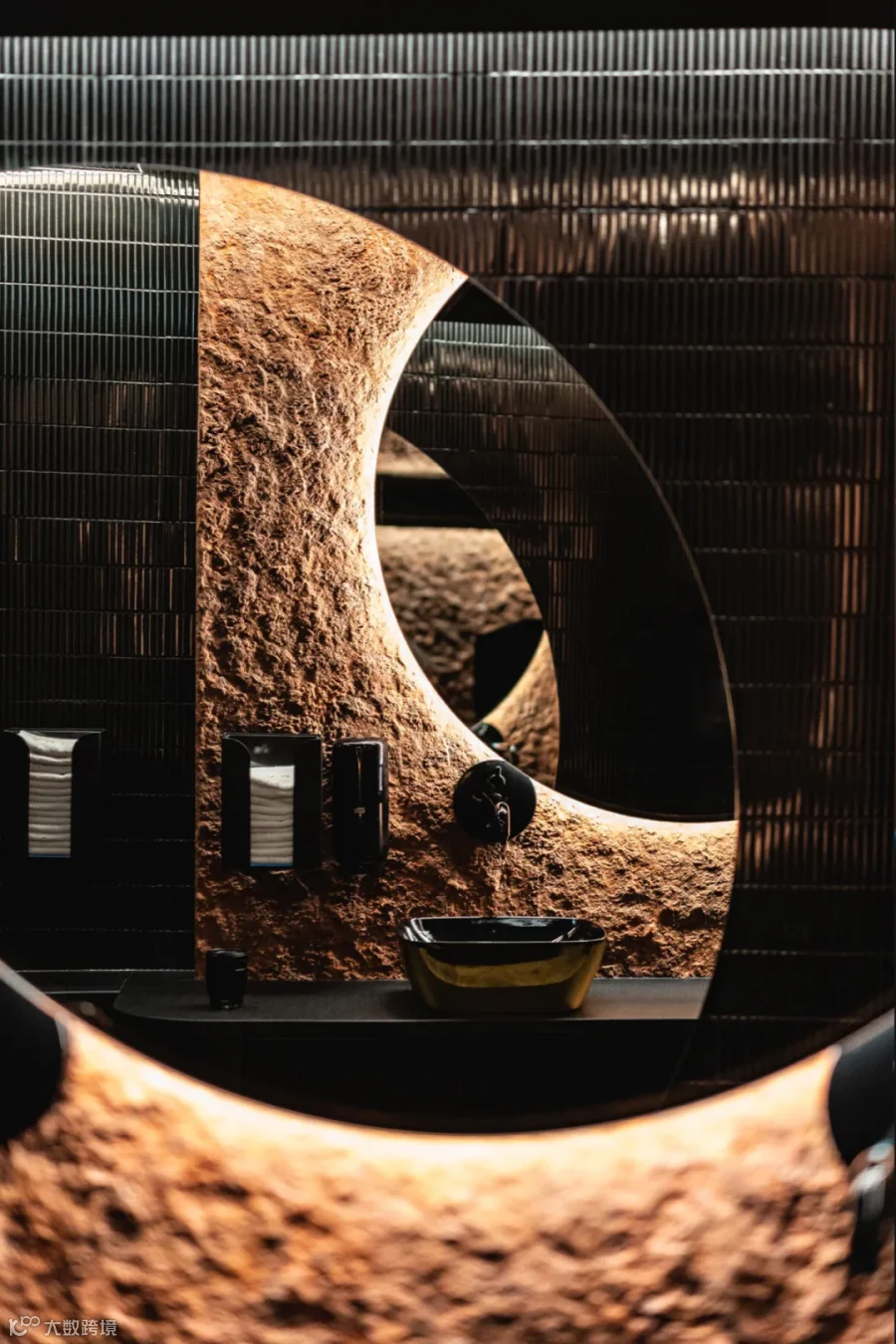尤为值得一提的是,那面巧妙嵌入灯板的墙壁,如同一道优雅的屏障,在私密空间与开放区域间划出了界限,既巧妙地保障了宾客所需的私密性,又不失其开放的姿态,与外界保持着和谐的联系。