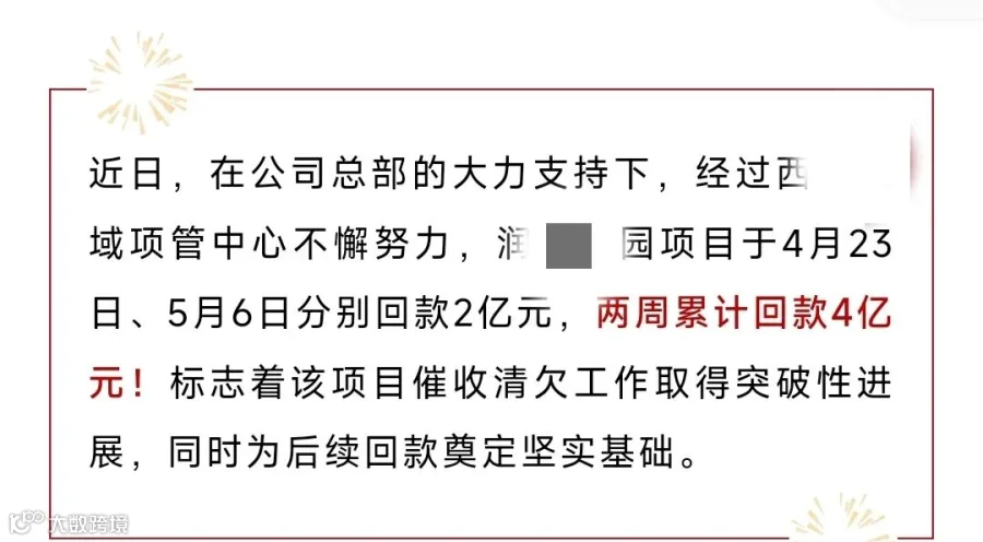 此前,据中建某局网络公开消息:公司采用定点式,追踪式,连续式催款方式,成功催收工程款4亿元。