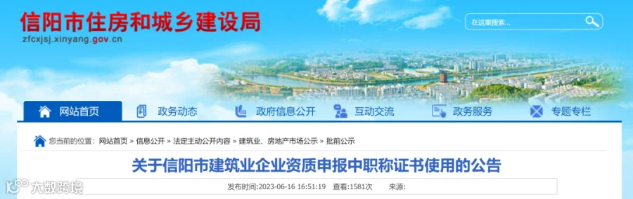 关于信阳市建筑业企业资质申报中职称证书使用的公告