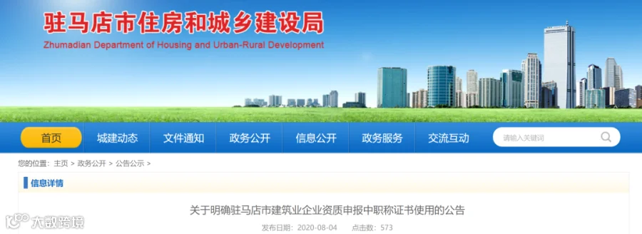 鹤壁市住房和城乡建设局 关于建筑业企业资质申报中使用外省职称证书有关问题的公告