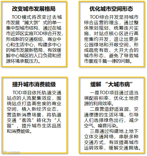 TOD理论诞生于新城市主义时代,被称为是大城市病的良方,从前文中对TOD的概念解析中可以了解到,TOD是绿色、可持续发展的。而从房企角度来看,涉足TOD开发业务,回报率上亦是表现良好。