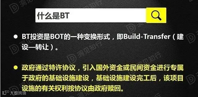 通俗地说,BT投资也是一种“交钥匙工程”,社会投资人投资、建设,建设完成以后“交钥匙”,政府再回购,回购时考虑投资人的合理收益。标准意义的BOT项目较多,但类似BOT项目的BT却并不多见。