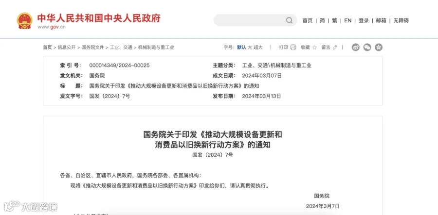 国务院关于印发《推动大规模设备更新和消费品以旧换新行动方案》的通知