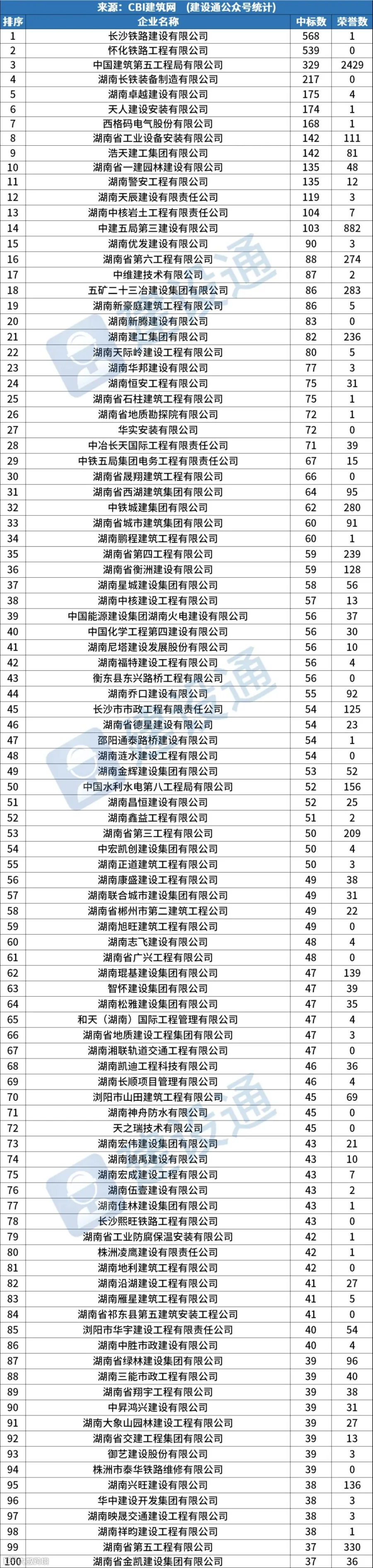 2023年湖南建企中标100强 新产业新赛道