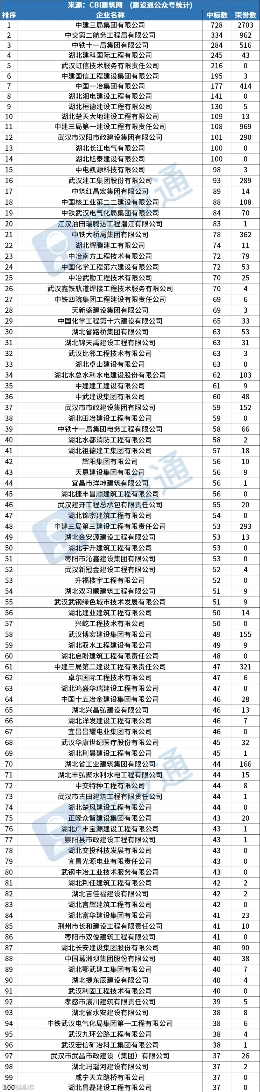 2023年湖北建企中标100强 新产业新赛道