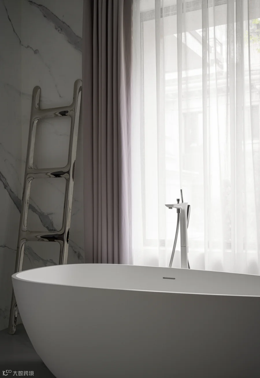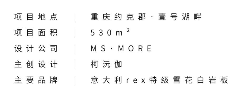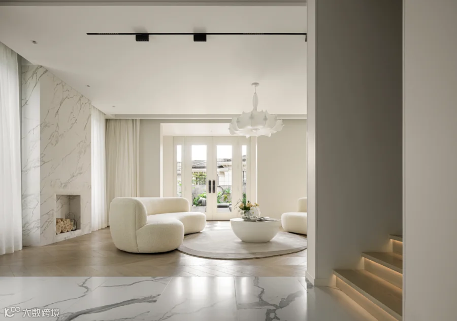 本案选用了REX特级雪花白,源自卡拉卡塔,经典的黑白组合,高贵的白色石纹,纯正的黑色线条,极致和永恒。现代简约的视觉,描绘出沉稳大气又不失温馨舒适的空间感受,没有繁花似锦,唯有灰白刻画的原生之美,缔造了空间永不过时的品味与格调。