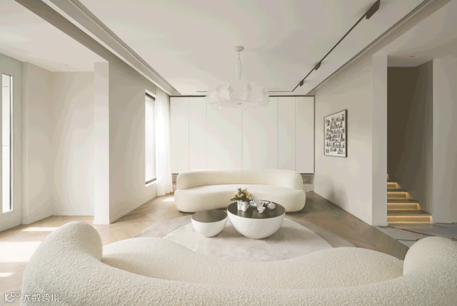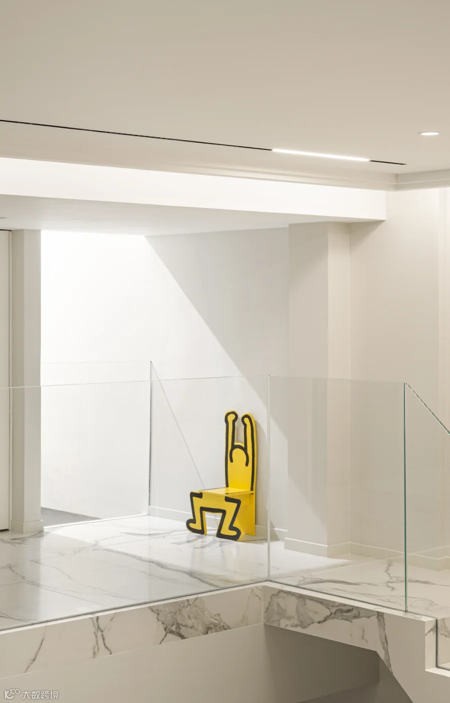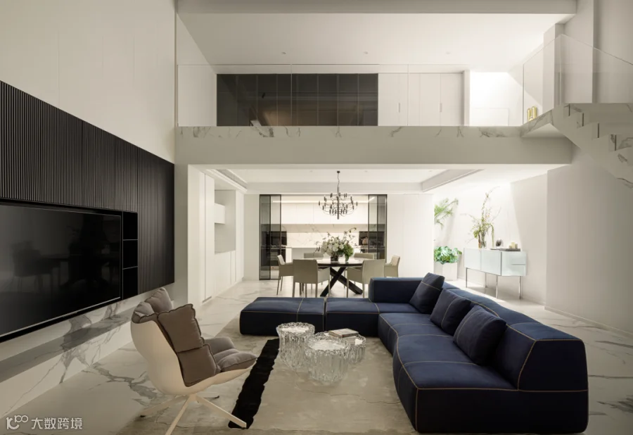 在空间设计上,我们亦将负一、负二层以loft的形式呈现,超高挑空、透明玻璃扶手的运用,使整个空间通透洁净,让家的尺度更无限边界。