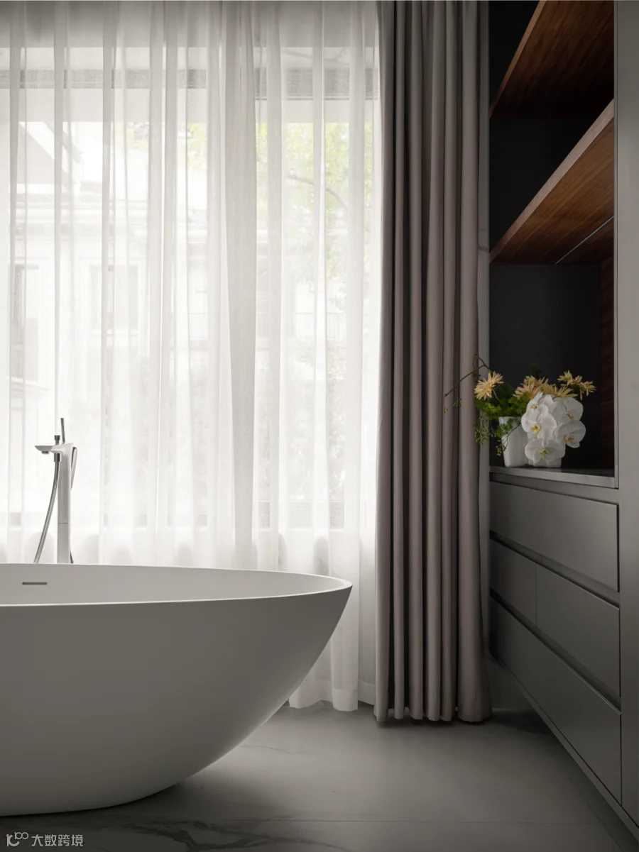 主卧衣帽间与卫生间的设计,则无需过多的奢华修饰,质感可寻觅于纹理,精致可润心于无形,每一寸皆是简美风情。