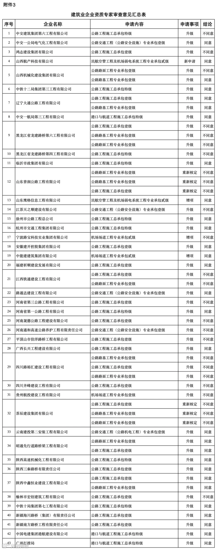 关于建设工程企业资质专家审查意见的公示