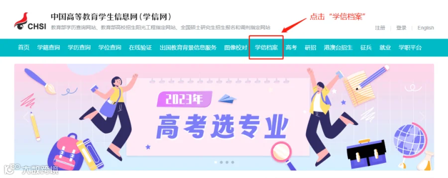 2.点击顶部菜单栏中的“学信档案”。