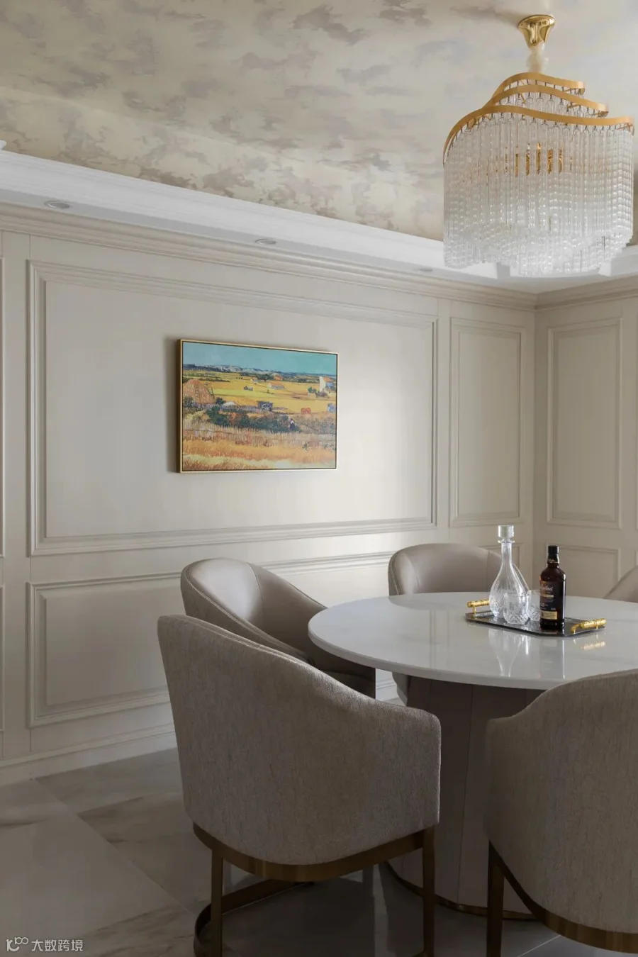 业主是一对事业有成的夫妻,孩子在国外求学,女业主喜欢欧洲梦幻城堡,对欧式风格的质感和格调情有独钟,而男业主则希望生活空间厚重肃静一些。本案例以高级灰与象牙白为空间的基调,通过精益求精的细节处理,令整个空间明朗而利落;部分跳跃色彩与精致饰品的点缀,营造出愉悦心灵和视觉的美感。