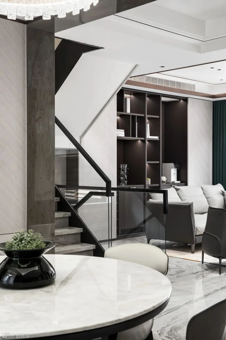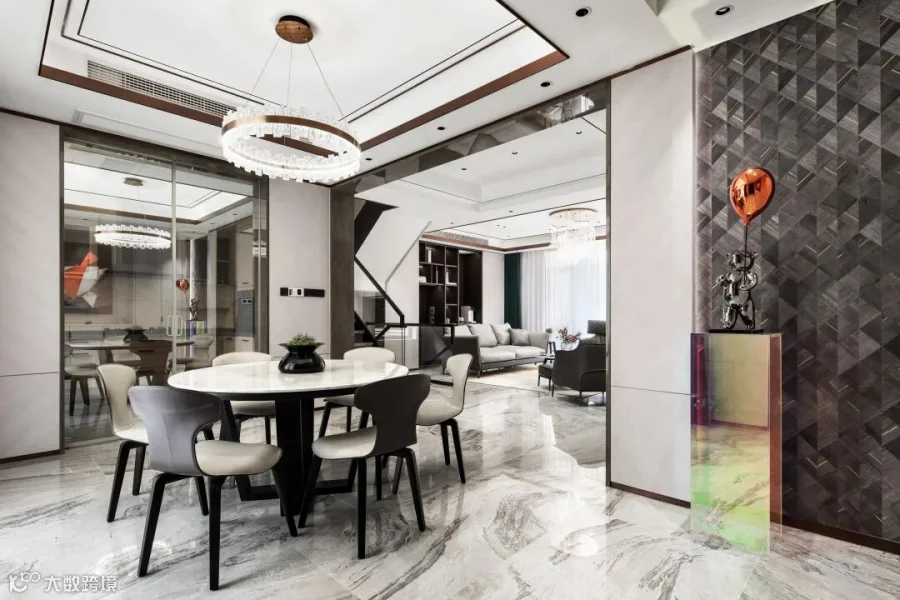 餐厅居于入门左侧,视线以此铺展,可将整个公共空间纳入视野。设计师采用通透的玻璃和灵活的动线开阔布局,在充分营造生活品味与质感的同时,用艺术和色彩给生活带来更多的惊喜。