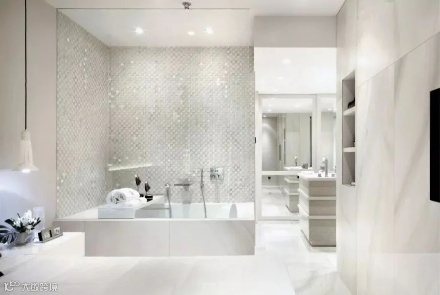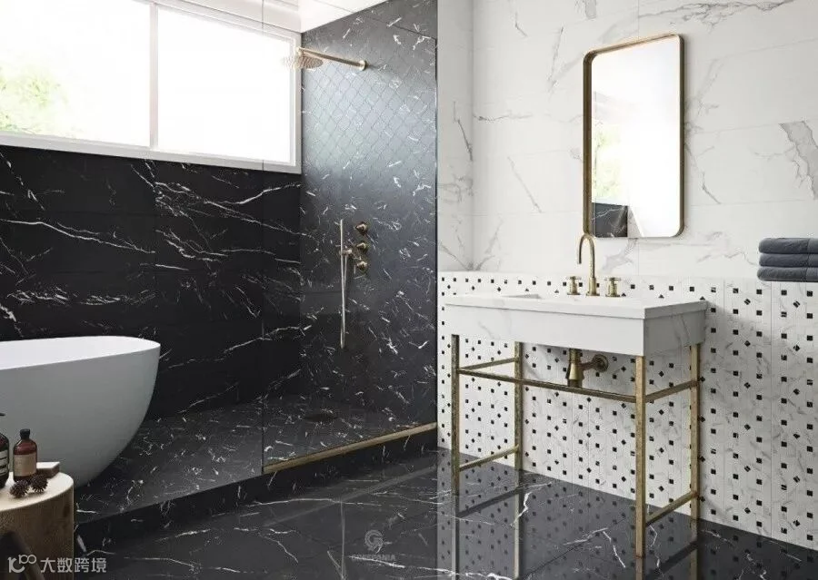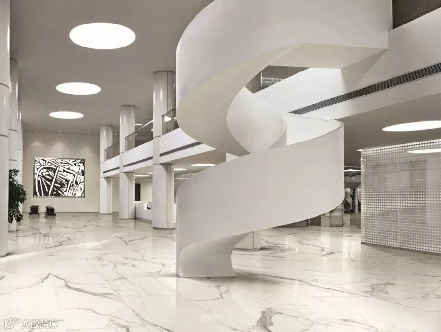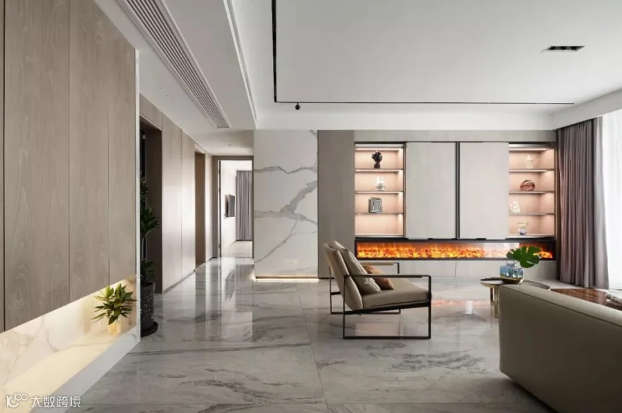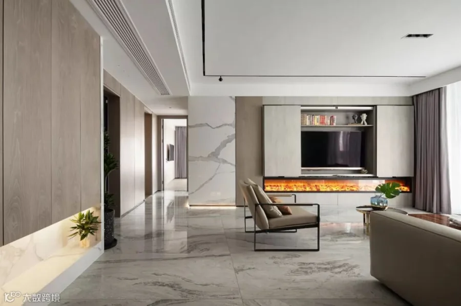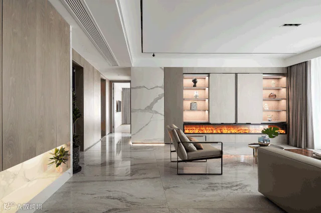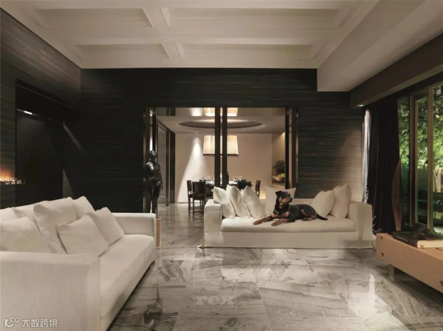 作品选用意大利REX瓷砖特级雪花白、法国流金灰、汉妮玉云白、金丝卡拉卡塔、马尔古那黑,以及西班牙GRESPANIA瓷砖伯爵等各大产品,将优雅、奢华的美学时尚推向极致,赋予空间高贵、清丽的独特魅力,带给居者精致简约,又不失自然隽永的美妙体验。