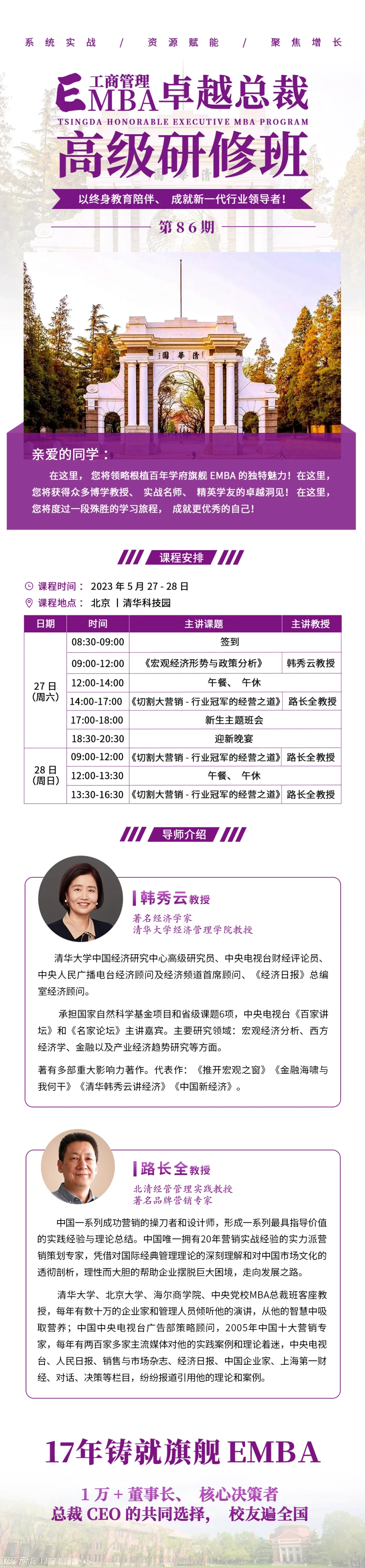 欢迎加入:清大·工商管理(EMBA)总裁高级研修班