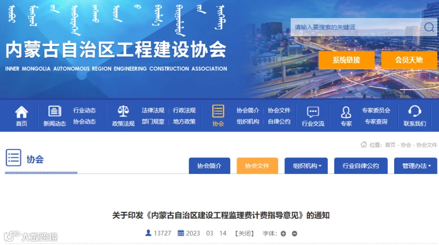 2023年3月,内蒙古发布关于印发《内蒙古自治区建设工程监理费计费指导意见》的通知,自发布之日起执行。