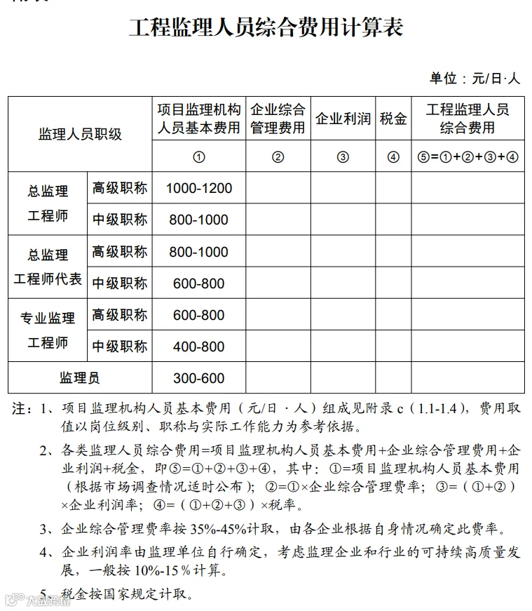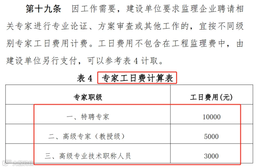 专监:高级职称600-800元/日·人,中级职称400-800元/日·人;
