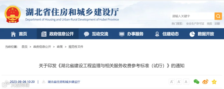 2023年9月6日,湖北省住建厅发布了《湖北省建设工程监理与相关服务收费参考标准(试行)》,自印发之日起施行。《标准》适用于全省房屋建筑工程和市政公用工程。