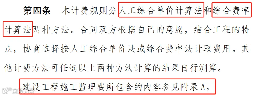 《标准》按综合费率法和人员综合计算法两种形式,根据合同双方意愿选择计费方式(工程监理费所包含的内容参见附录 C)。