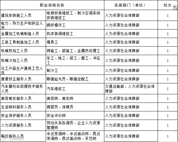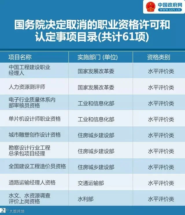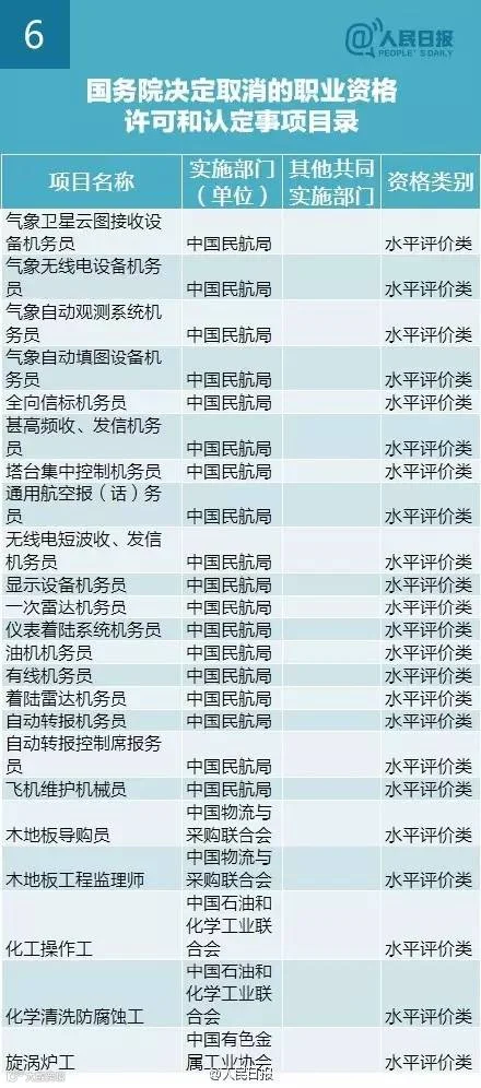 第六批取消的47项职业资格许可和认定事项
