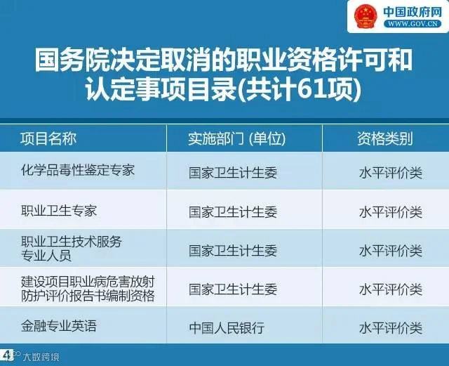 前四批取消的211项职业资格许可和认定事项
