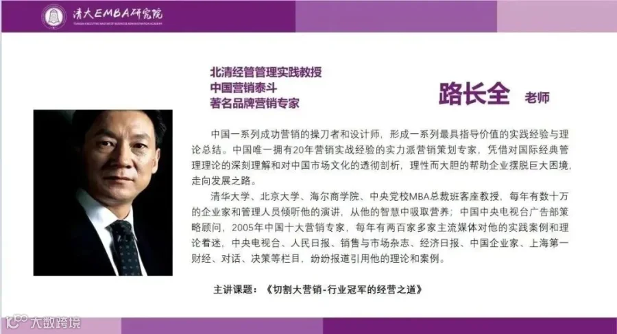 北清经管管理实践教授、中国营销泰斗、著名品牌营销专家——路长全教授带来 《切割大营销一行业冠军经营之道》