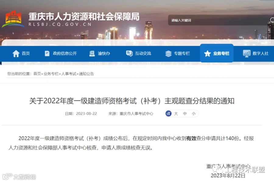 关于2022年度一级建造师资格考试(补考)主观题查分结果的通知