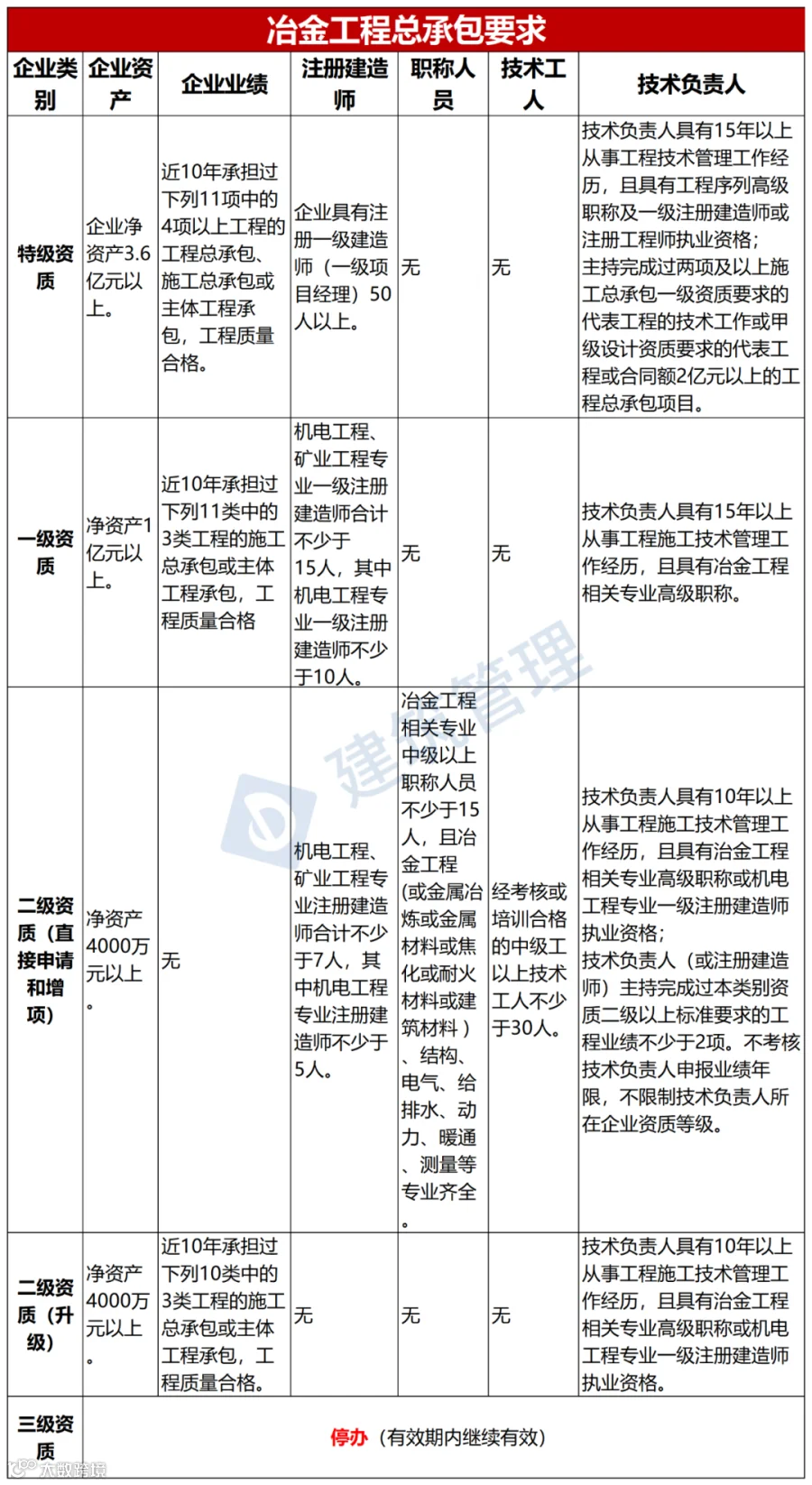 本文将根据最新政策对各类施工总承包企业资产、企业业绩、人员要求进行汇总,供读者参考!