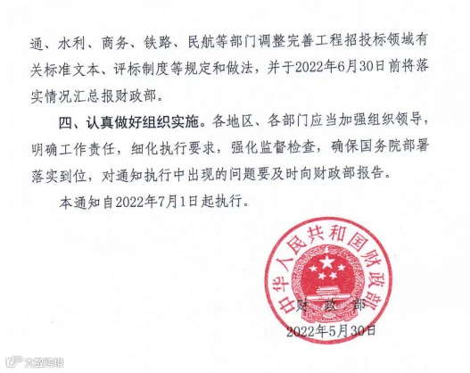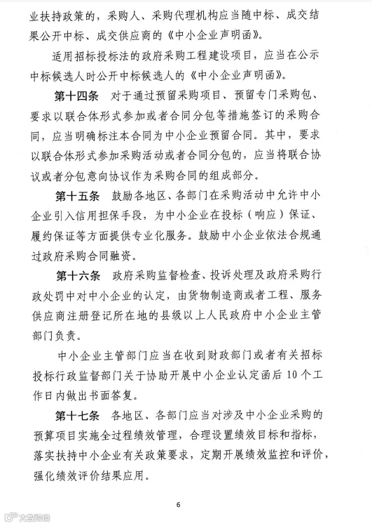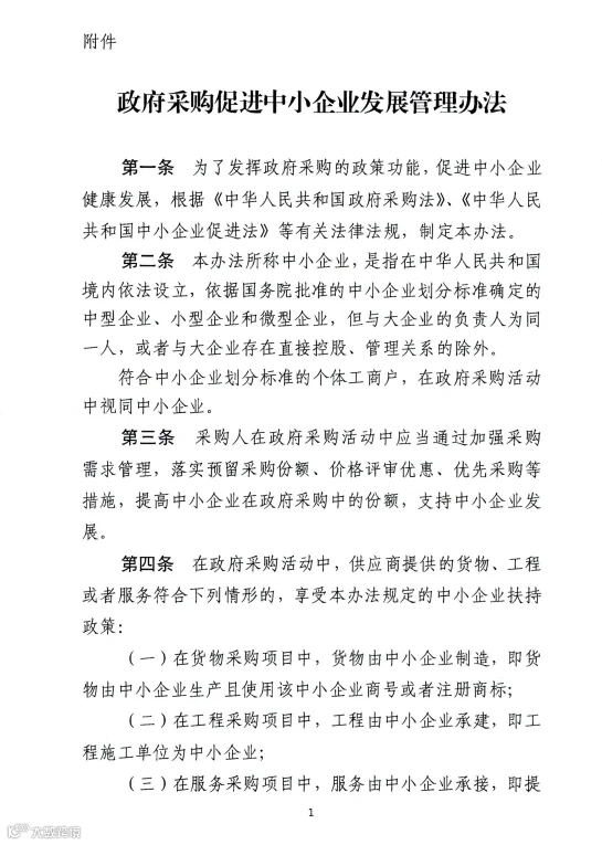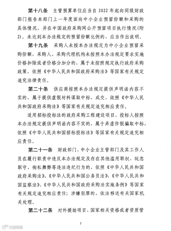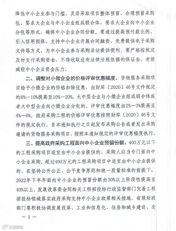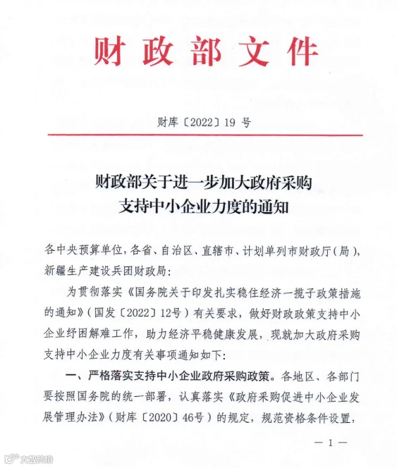 此前财政部发布《关于进一步加大政府采购支持中小企业力度的通知》,自2022年7月1日起执行。明确: