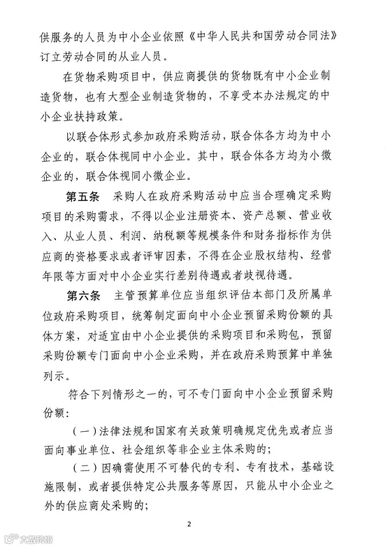 1.财政性资金,是指纳入预算管理的资金。以财政性资金作为还款来源的借贷资金,视同财政性资金。国家机关、事业单位和团体组织的采购项目既使用财政性资金又使用非财政性资金的,使用财政性资金采购的部分,执行政府采购中小企业预留份额政策;财政性资金与非财政性资金无法分割采购的,统一执行政府采购中小企业预留份额政策。