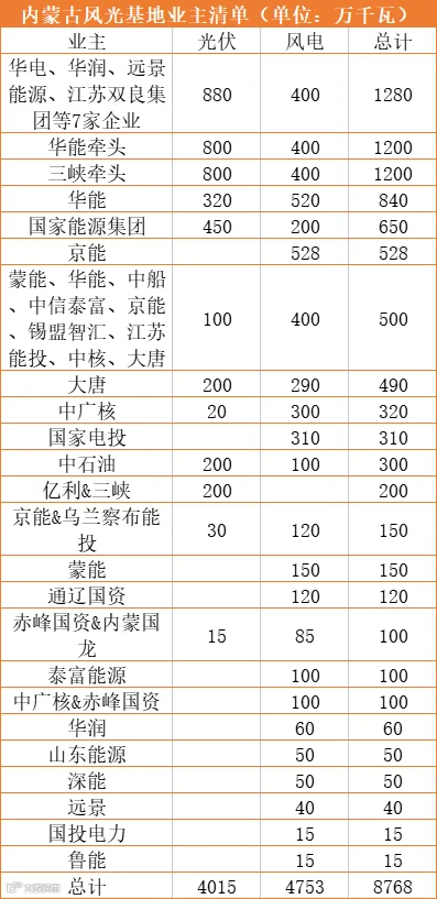 新能源项目的大规模批复自然吸引了央企的积极布局,以华能、大唐、三峡等为代表的电力央企纷纷斥巨资投入内蒙。