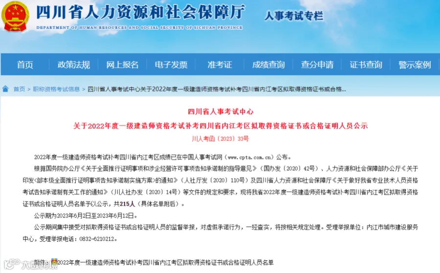 相关阅读:喜报!四川共计13591人拟通过2022年度一建考试,合格率高达9.9%!新增补考合格公示